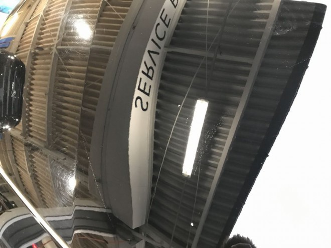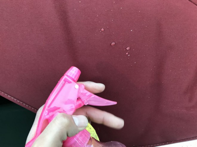数時間後、乾燥終了した幌に霧吹きで水をかけて確認します!!