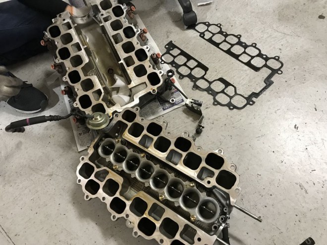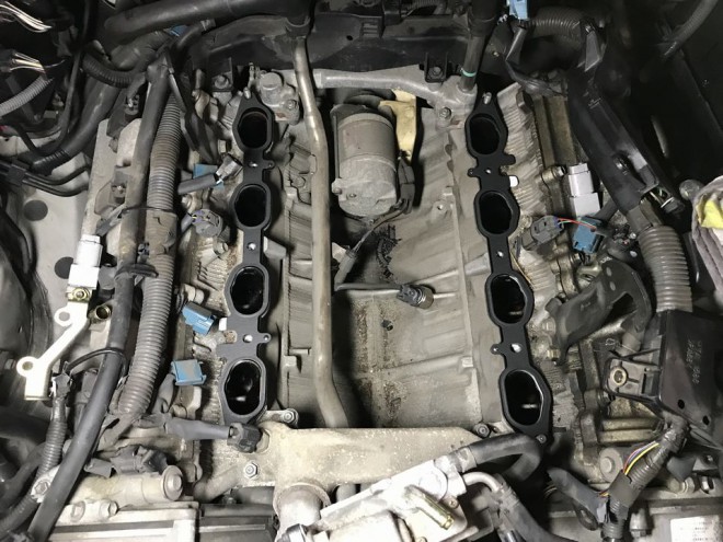 ノックセンサー交換する為にスロットボデー、インテークマニホールド、インジェクタなど外していきます!取り付ける時は、しっかり新品ガスケットへ交換です!