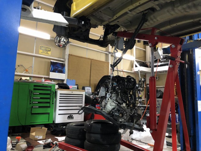 横置き型の為、エンジン&ミッション下しての作業となります(^^♪