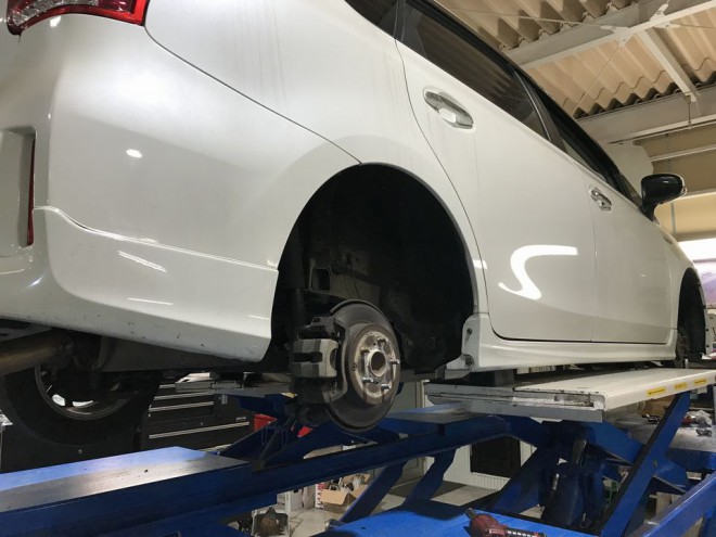 愛知県のお客様☆トヨタ プリウスαを車検でお預かりしております。