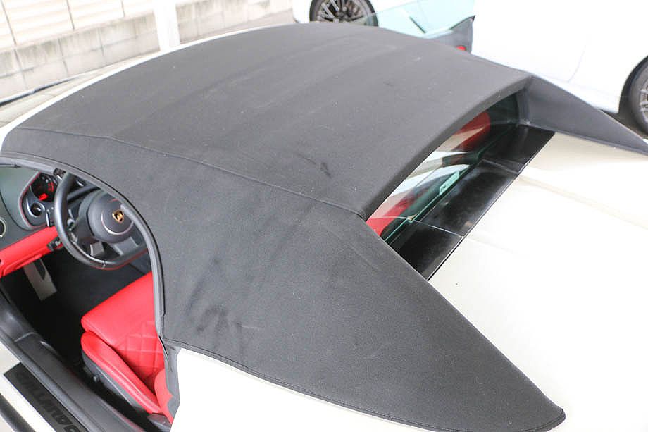 エクステリアには、特別カラーとなるバルーンホワイト(パール)のボディーカラーにブラックソフトトップが組み合わさり、更にメッシュ部分をグロスブラックでカスタムペイントを施しております!!