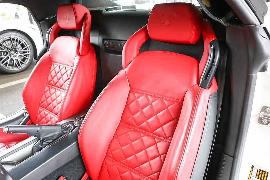 レッド&ブラックの2トーンインテリアは、2シーター化されアルカンターラとカーボン・ファイバーで造られた贅沢なスポーツシートとなっております!!