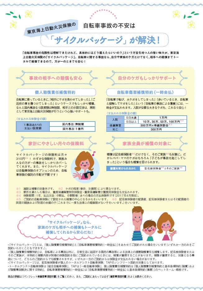 東京海上日動火災の個人賠償責任補償特約や自転車損害補償特約・サイクルパッケージとはとは??