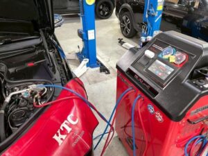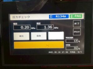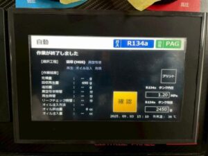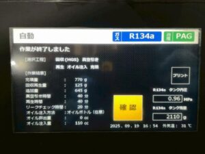 3週間ほど納期がかかりましたが、現品修理から帰ってきたコンプレッサにて復元。コンプレッサオイルとガス充填後、エアコン作動が復帰したことを確認してご納車いたしました。