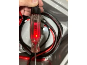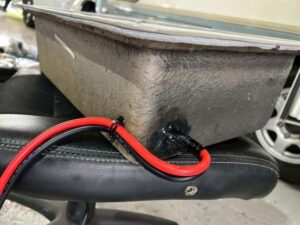 こちらのケーブルをメインバッテリーに繋げるため、バッテリーの上部にあった蓋に穴を開け通していきます。