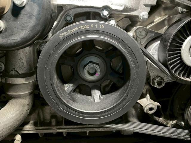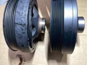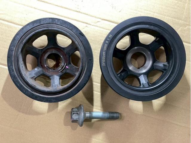 車検でご入庫いただき、点検時にクランクプーリーの剥離が確認できたので交換させていただきました。