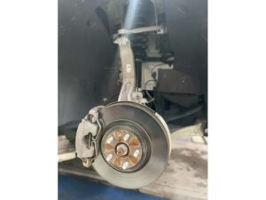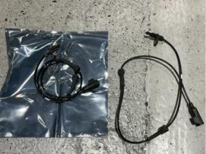 スピードセンサーはブレーキキャリパーの裏に取り付けられ、車輪の回転速度を計測しています。4輪それぞれの車輪速度を測り、車輪の回転速度差で車両の走行状態を認識して様々な制御を行っている大切な部品です。