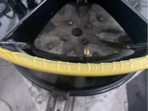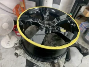 リムに傷がつかないようにマスキングテープでリムを保護します。