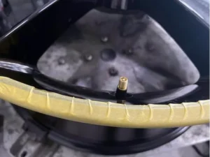 最後にリム、エアバルブからの漏れ確認をして作業完了です。