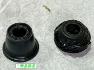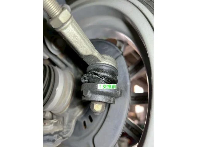 車検点検時、左右のタイロットエンドブーツからのグリス漏れを確認し、このままでは車検の取得ができないので整備させていただきます。