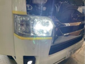 今回はハイエースのヘッドライトバルブ、スモールライトをLEDに交換させていただきました。