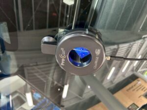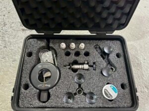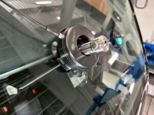 専用の機械を使い、傷の中を真空引きしてガラスリペア液を傷の中に圧送します。