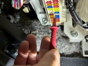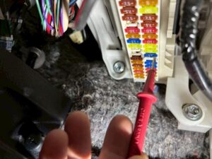 15Aのヒューズを検電器を使用して通電状態を確認させていただきます。 これにより、ヒューズの断線や電気系統の不具合がないかを正確に診断することが可能となります。