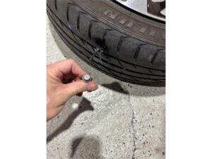 本日は、トヨタヴォクシーのご入庫です。タイヤがパンクしたという事で交換か修理かタイヤを外して確認していきます。