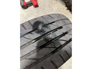 タイヤ自体は溝もありまだ使えるという判断で修理で対応致します。