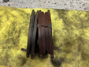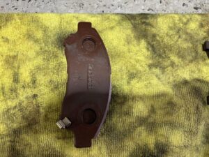 限度値1.0mmまで消耗したパッドと新品残量11.5mmのパッドです。