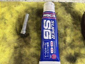 WAKO'S製のブレーキグリスを使用しました。粘着が強いのが特徴のグリスです。