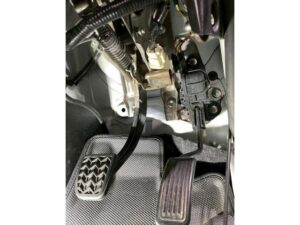 フロントでの作業が終わりましたら運転席の足元よりブレーキペダルとブースターを切り離します。