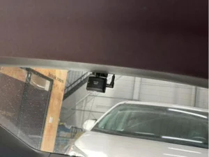フロントカメラはフロントガラスのミラーで隠れる部分に取付ます。