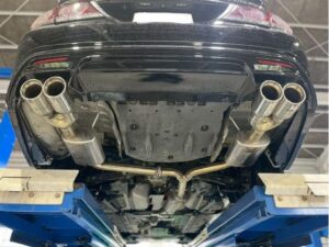 社外マフラーの音量が大きいとのことで、モデリスタマフラー(持ち込み品)への交換となりました。