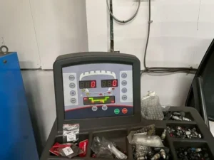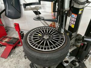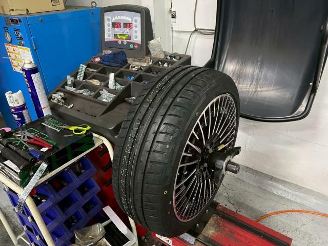 タイヤを組み付けた後はホイールバランス調整をしていきます。