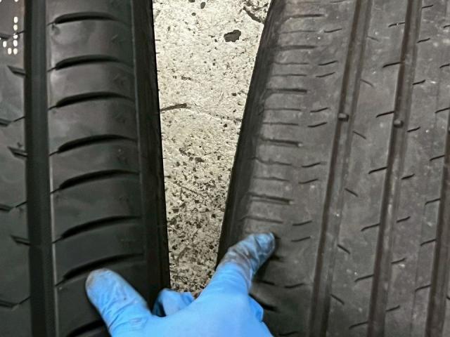新品タイヤと交換タイヤだとこれだけ溝の違いがあります。