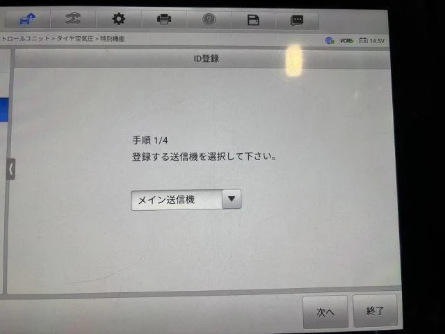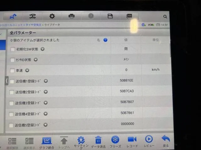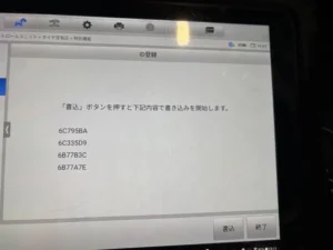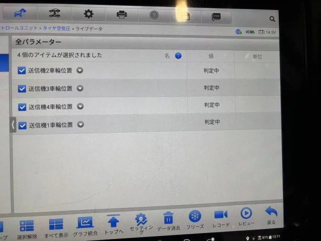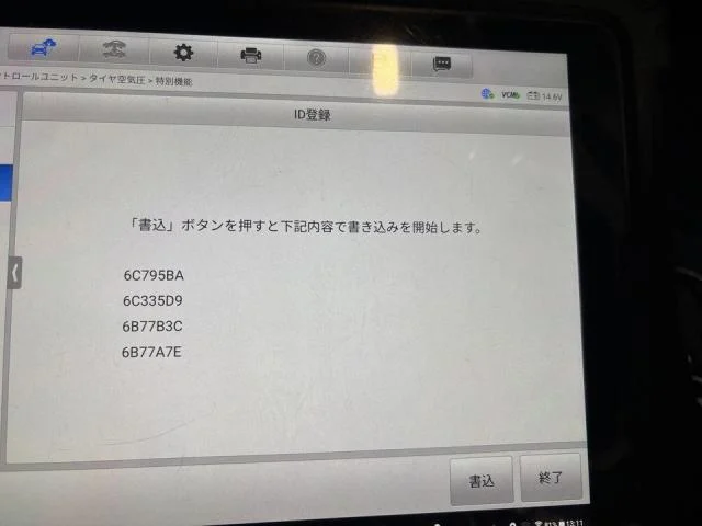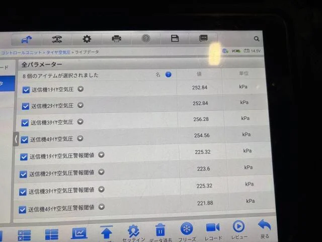 登録後、閾値と実空気圧を確認します。車輪位置は走行学習にて判定される旨をお伝えしご納車させて頂きました。