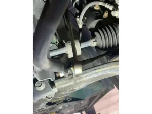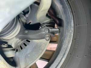 まずは足廻り、下廻りの点検です。タイロッドエンドブーツのグリス漏れ、スタビライザリンクにもグリス漏れがあった為、お見積りいたします。