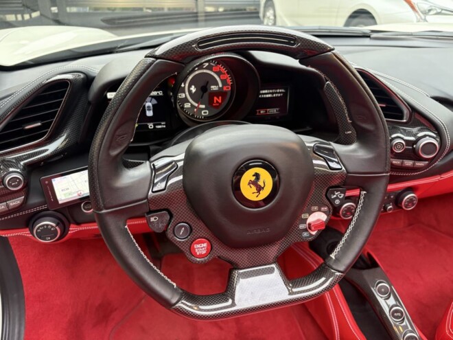 「フェラーリ 488スパイダー 正規ディーラー車 LEDステアリング カーボンダッシュインサート カーボンセンターブリッジ」
