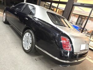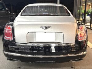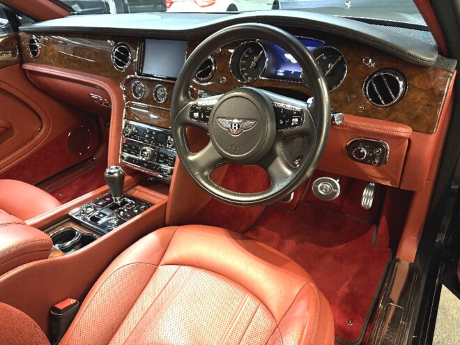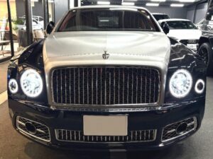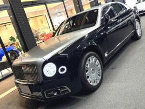 「ベントレー ミュルザンヌ 正規ディーラー車 右ハンドル 後期モデル サンルーフ サテン調ラッピング施工 LEDヘッドライト 純正20インチアルミホイール ベルーガレザー/ダークファイアカーペット ピクニックテーブル ベンチレーション&マッサージ ACC オニキスブラックメタリック(サテン調アッパー2トーンラッピング)」