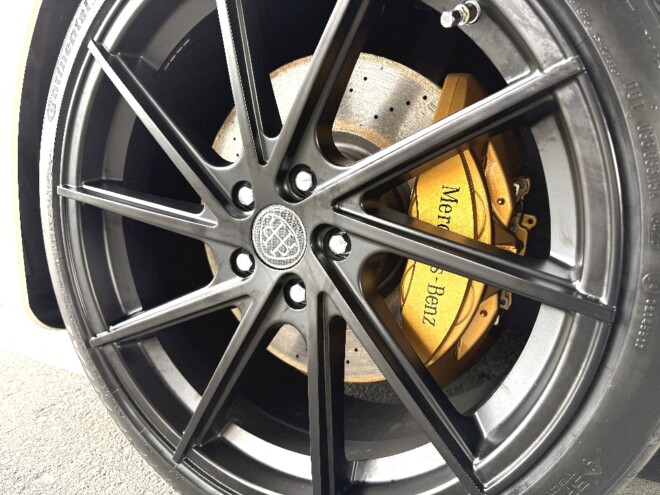 今回、タイヤとホイールを交換させていただき、ローダウンとキャリパーをゴールドペイント等のご依頼もいただきました。