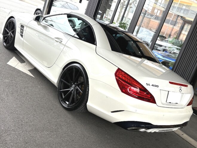 「メルセデスベンツ SL400グランドエディション 特別仕様車 正規ディーラー車 マジックスカイコントロールパノラミックバリオルーフ designoエクスクルーシブナッパレザーシート ヘッドレスト「Grand Edition」刺繍 ローダウン ロルフハルトゲ20インチホイール」