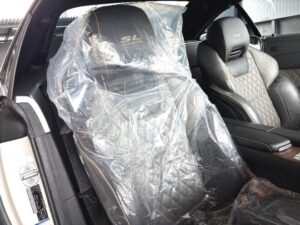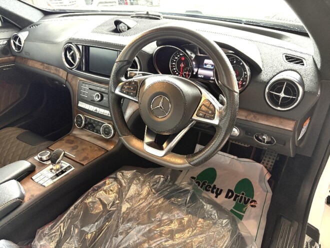 今回のお乗り換えは、長くお乗り頂いたSL550のお乗り換えで、同じハードトップオープンカーと言う事で、「メルセデスの最高級ロードスターSL のトップパフォーマンスモデルである「メルセデスAMG SL65」に採用されている、ダイヤモンドステッチがあしらわれたタンドラブラウンパールとブラックを組み合わせたナッパレザーシートとライトブラウンポプラウッドインテリアトリムが、極めて上質でエレガントな空間を演出し、マジックスカイコントロールパノラミックバリオルーフ、マルチコントロールシートバック、ドライビングダイナミックシート等を特別装備した、SL400グランドエディション」をご提案させて頂きお選びいただきました。