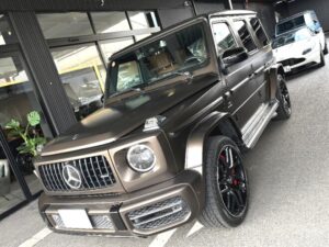 「AMG G63 正規ディーラー車 左ハンドル ナイトPKG AMG22インチホイール カーボンインテリアPKG カーボンステアリング サドルブラウン&ブラックレザーインテリア シートヒーター ブルメスターサウンド スペシャルオーダーカラー シトリンブラウンマグノ(マットカラー)」