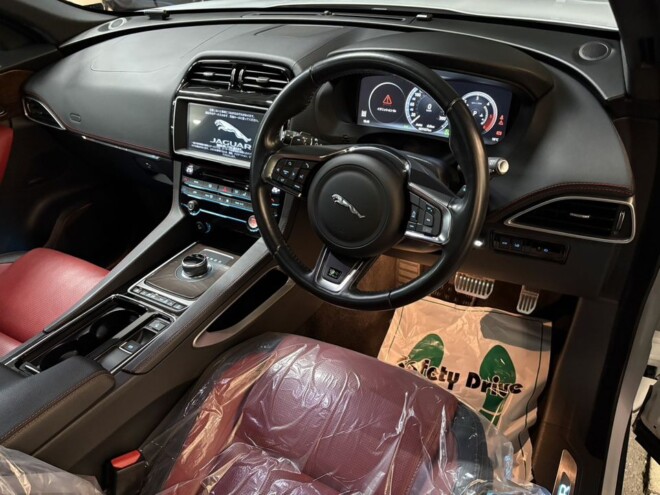 「ジャガー Fペイス R-スポーツ 正規ディーラー車 LEDヘッドライト パノラミックグラスサンルーフ 純正オプション22インチアルミホイール 電動テールゲート クルーズコントロール 純正ナビ/フルセグTV/360°カメラ ブラック×レッドレザーシート/ヒーター スマートキー」