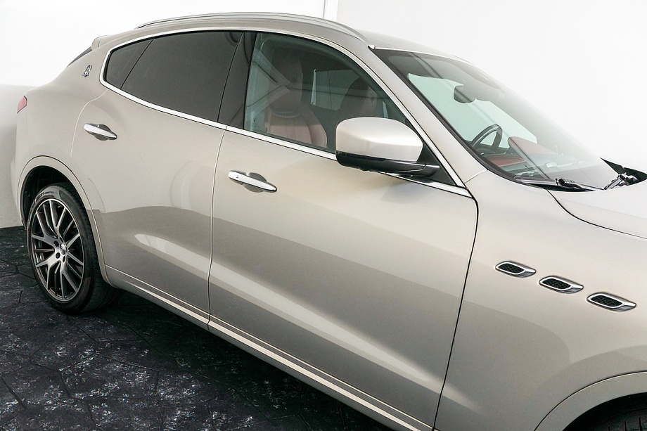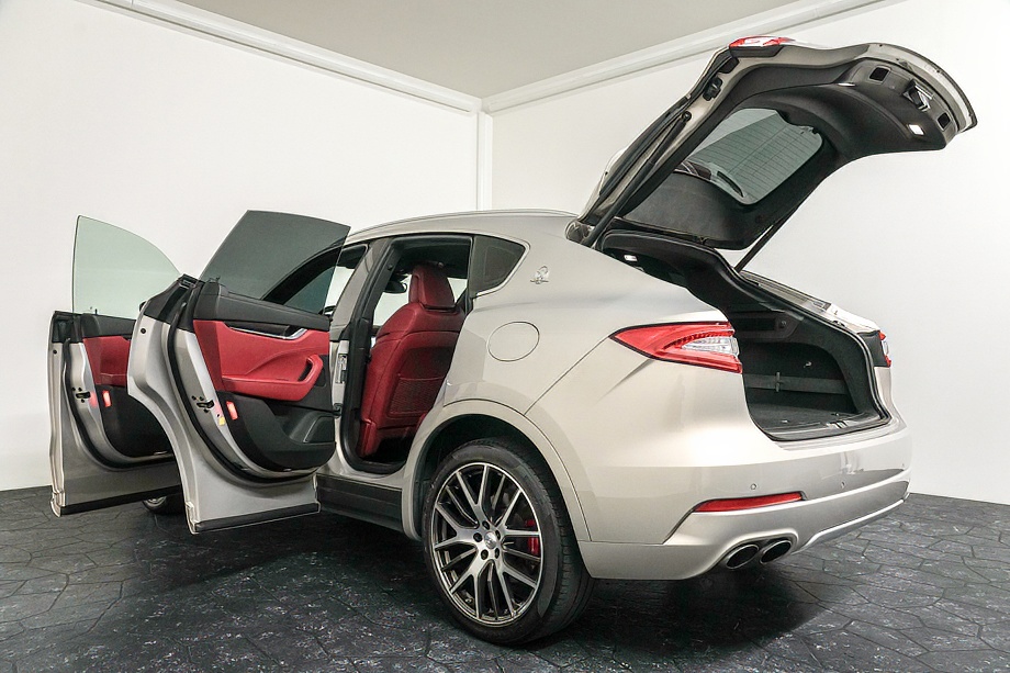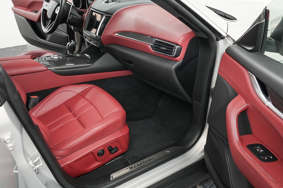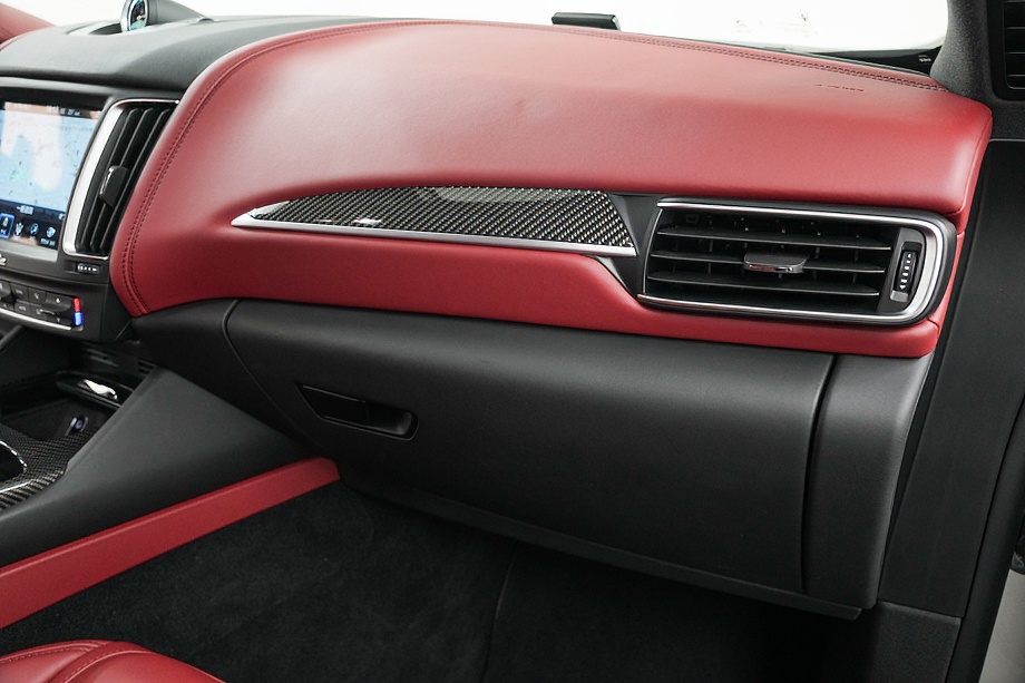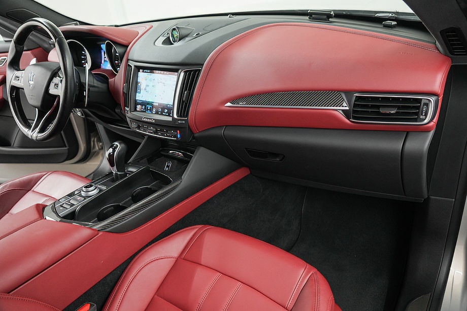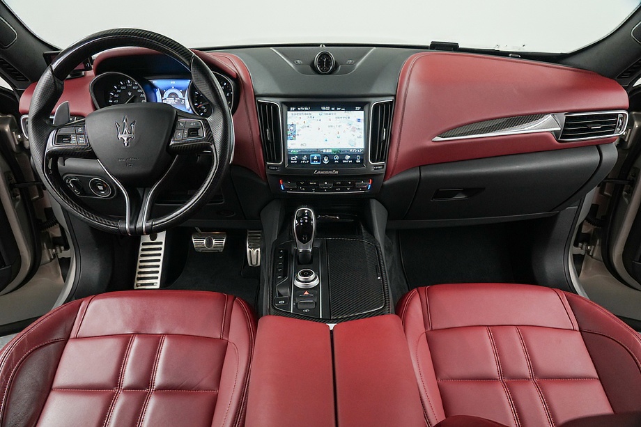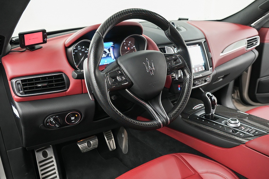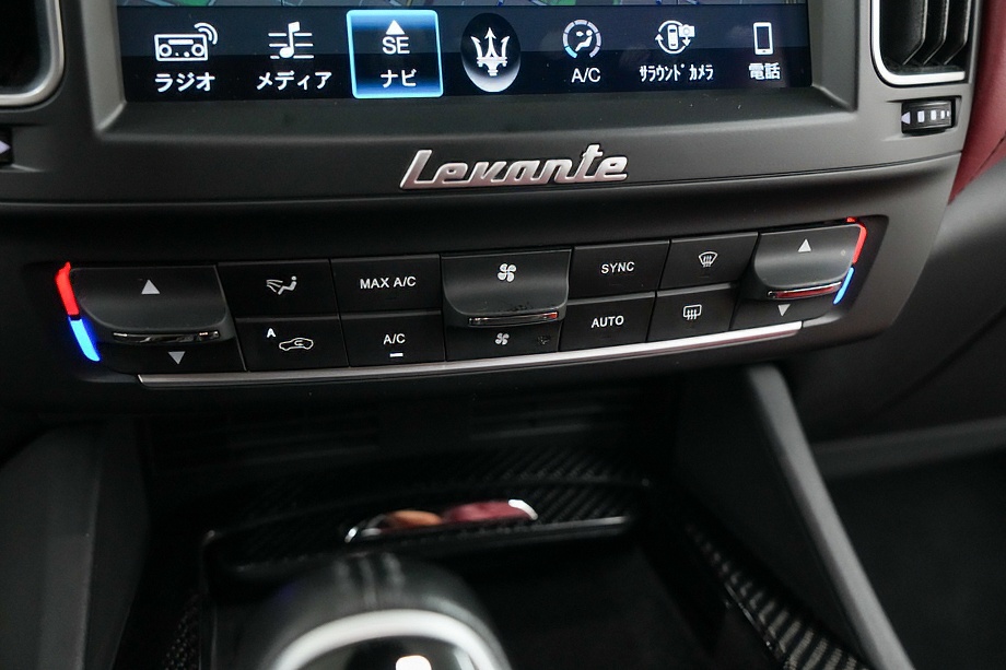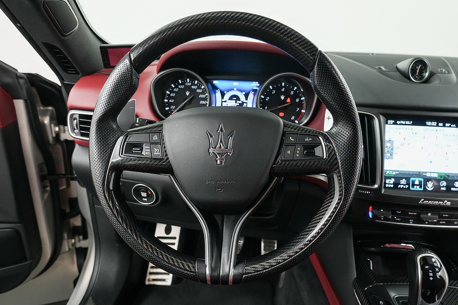 マセラティ レヴァンテ 正規ディーラー車 左ハンドル カーボンインテリアパネル カーボンステアリング レッドレザーインテリア シートヒーター 純正21インチホイール レッドキャリパー 純正ナビ TV カープレイ 360°カメラ パワートランク シャンパーニュ平成29年1月