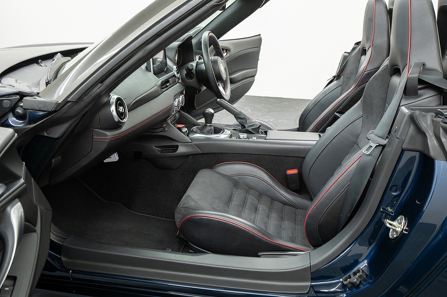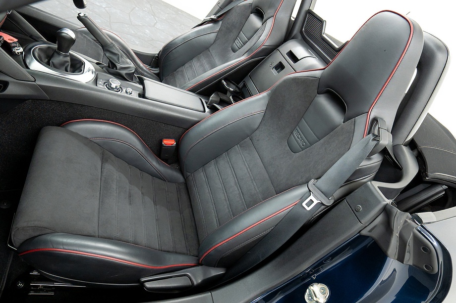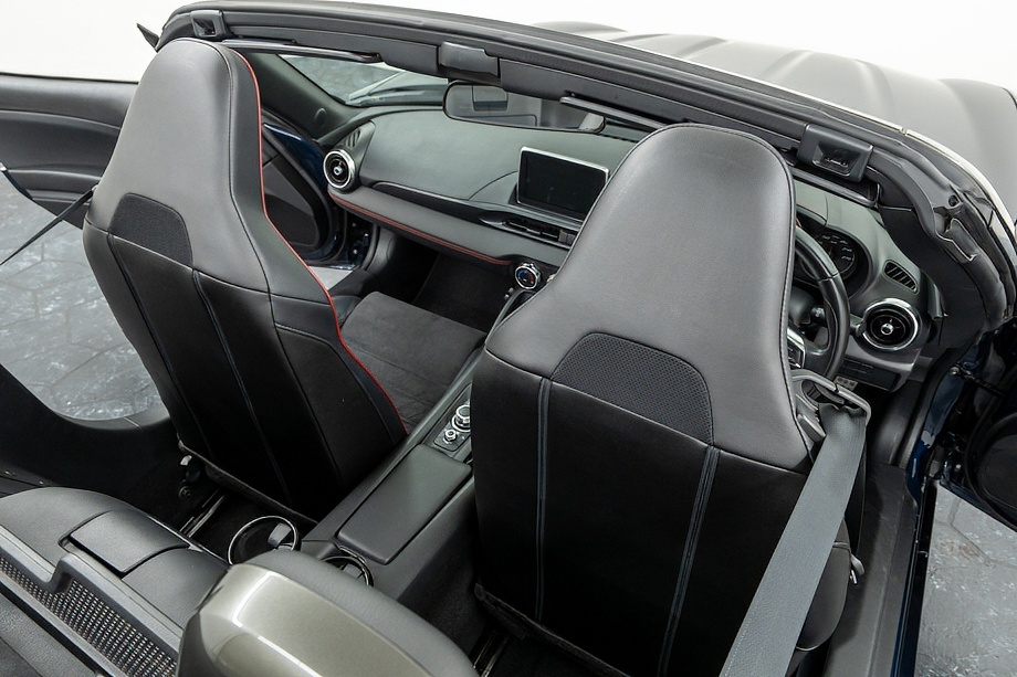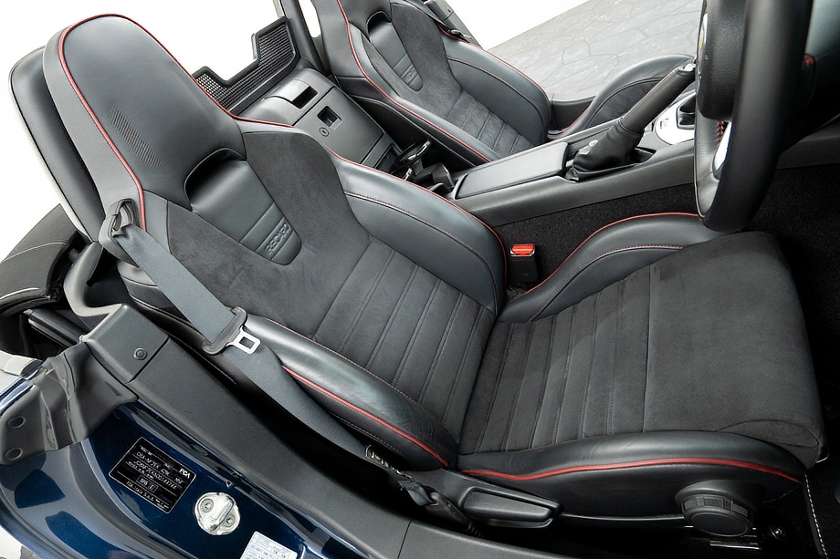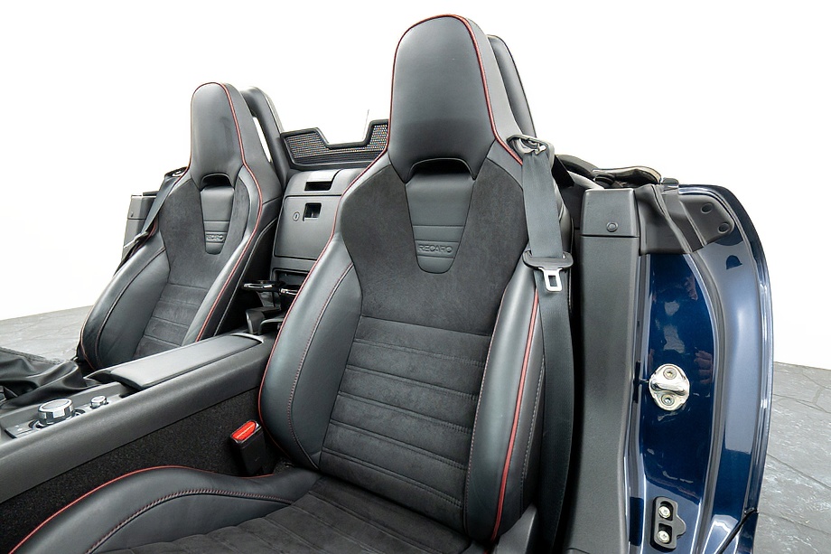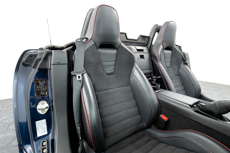 LEDヘッドライトが夜間でも圧倒的な視認性を確保し、見た目にも精悍な印象を与えます!そのスポーティな外観とは裏腹に、インテリアには快適性と高級感を両立した、RECARO製ブラックハーフレザーシートを採用!ホールド性に優れ、コーナリング時でも身体をしっかりと支えてくれます!また、シートヒーターを備えており、オープン走行時の肌寒い季節でも快適なドライブが可能です!