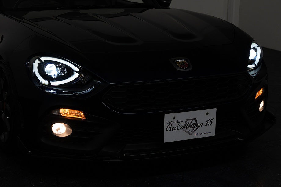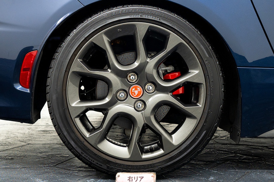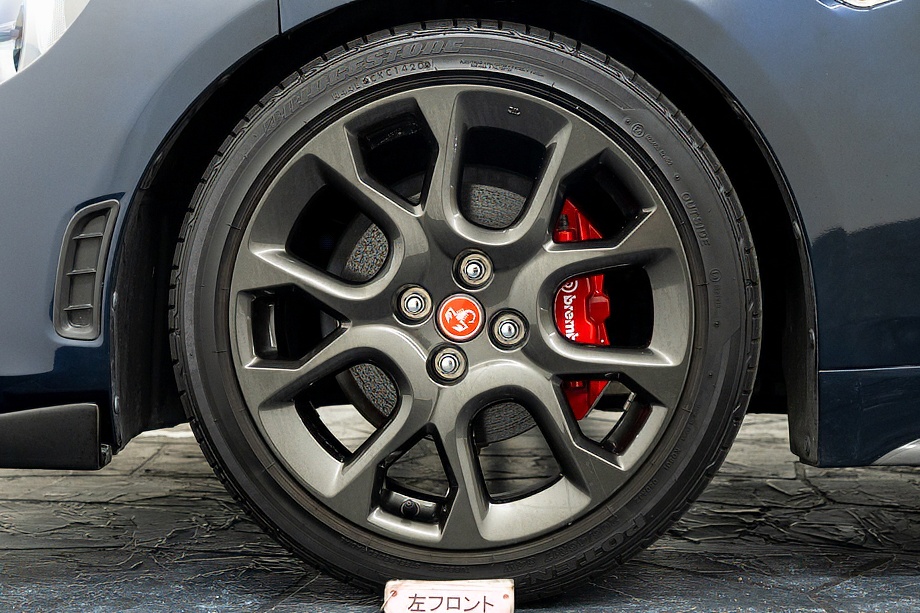 エクステリアには、存在感を高める社外フロントリップスポイラーを装着!低く構えたフォルムとXYZ製車高調の組み合わせにより、路面との一体感を極めたスタイリングを実現しています!足元には純正17インチアルミホイールをセットし、アバルトらしいシャープなデザインと俊敏なハンドリングを両立!