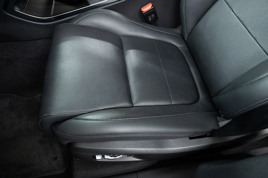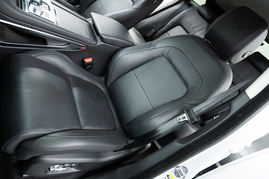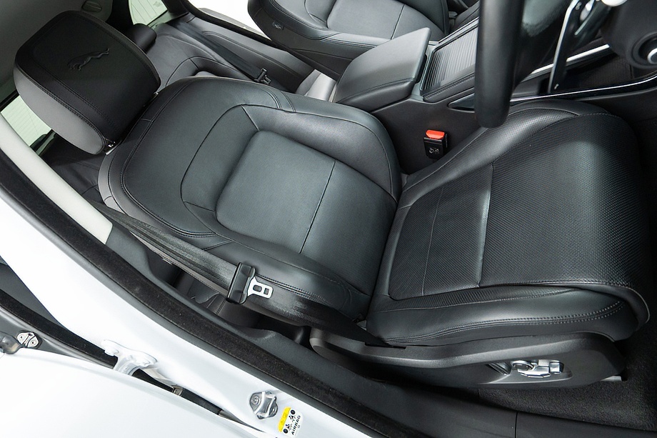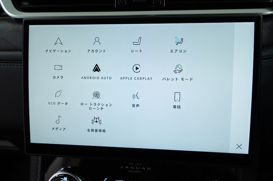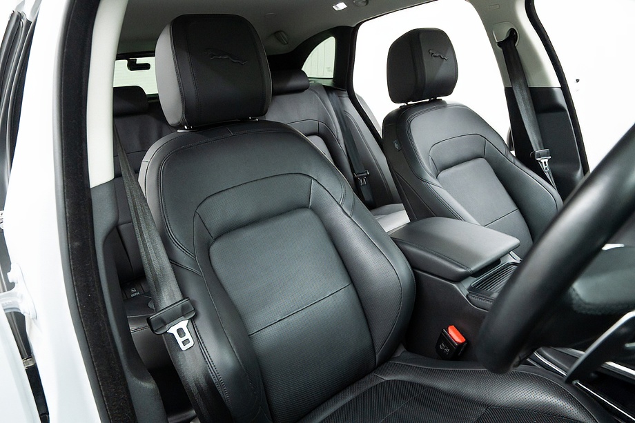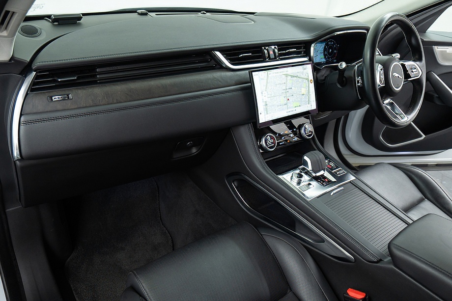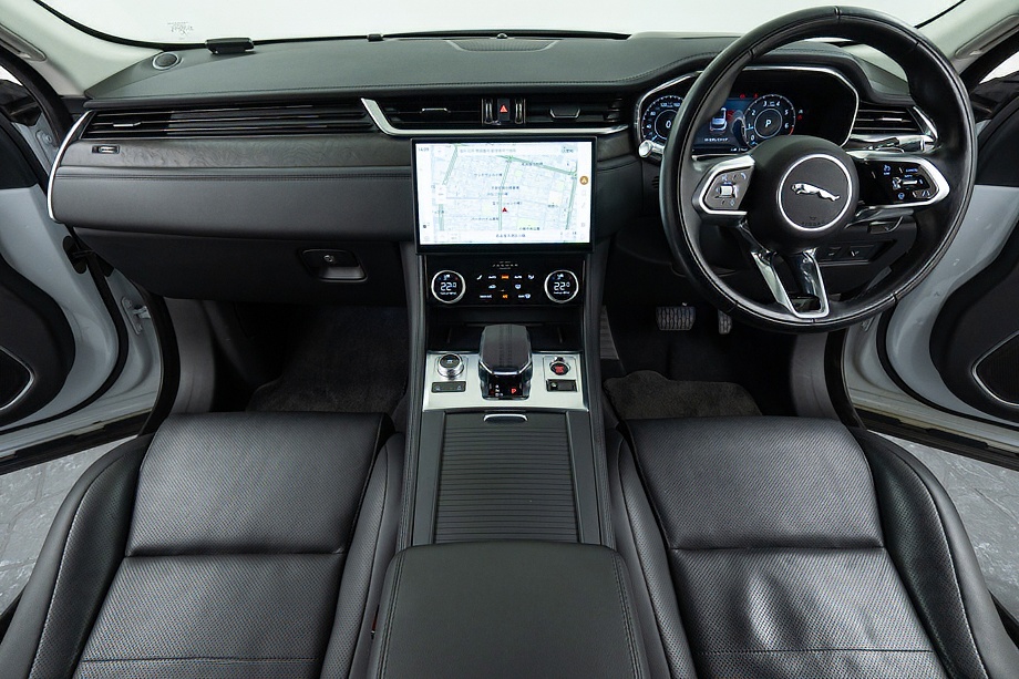 インテリアは上質なブラックレザーシートを採用!フロントシートにはヒーター/ベンチレーション機能を備えており、冬は暖かく、夏は涼しく、どの季節でも快適にドライブをお楽しみいただけます!シンプルながら洗練されたデザインのキャビンは、ドライバーを中心に考え抜かれた設計となっており、ステアリングを握った瞬間にジャガーならではの高揚感が広がります!
