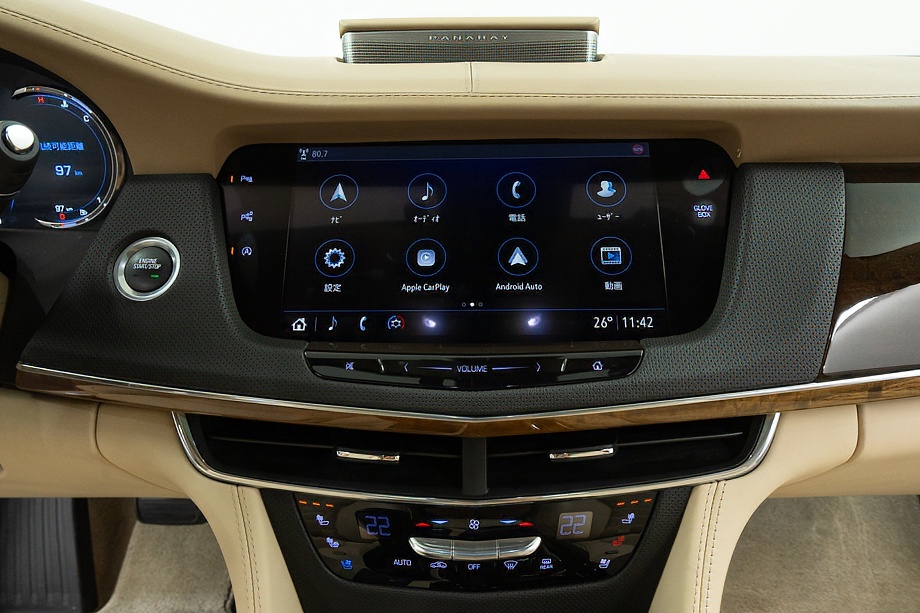 エンターテイメント性もこのCT6 プラチナムの大きな魅力です!後席にはリアエンターテイメントシステムを搭載し、長旅でも乗る人すべてが快適に過ごせる空間を実現!さらに、BOSEが誇る最上級オーディオシステム「PANARAY(パナレー)」を採用し、34スピーカーが奏でる立体的なサウンドが車内を包み込みます!コンサートホールのような臨場感をぜひ体感してください!