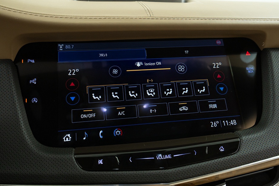 インテリアはキャデラックのクラフトマンシップが息づく、まさに「ラグジュアリーサロン」!上質なベージュレザーシートがキャビン全体を包み込み、フロント・リアともにシートヒーター&クーラーを完備!さらにマッサージ機能付きで、長距離ドライブも疲れ知らずの極上空間を実現しています!触れた瞬間に伝わる素材の質感、手縫いのステッチ、ウッドパネルの輝き――すべてがプレミアムな時間を演出します!