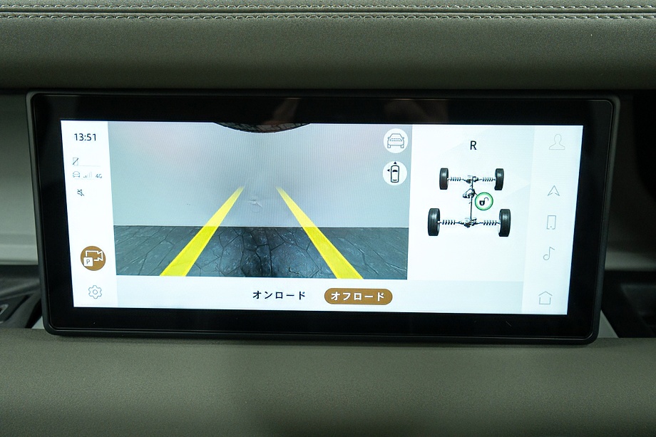 装備面も抜かりなく、純正ナビ/全方位カメラに加え、LEDヘッドライトや20インチグロスブラックホイールがスタイリッシュな印象を演出。