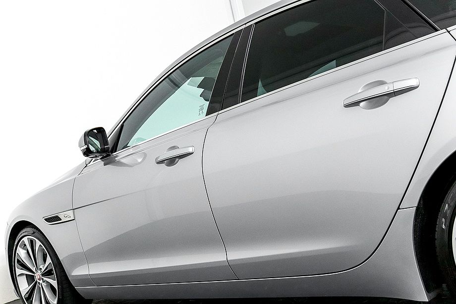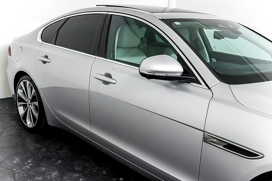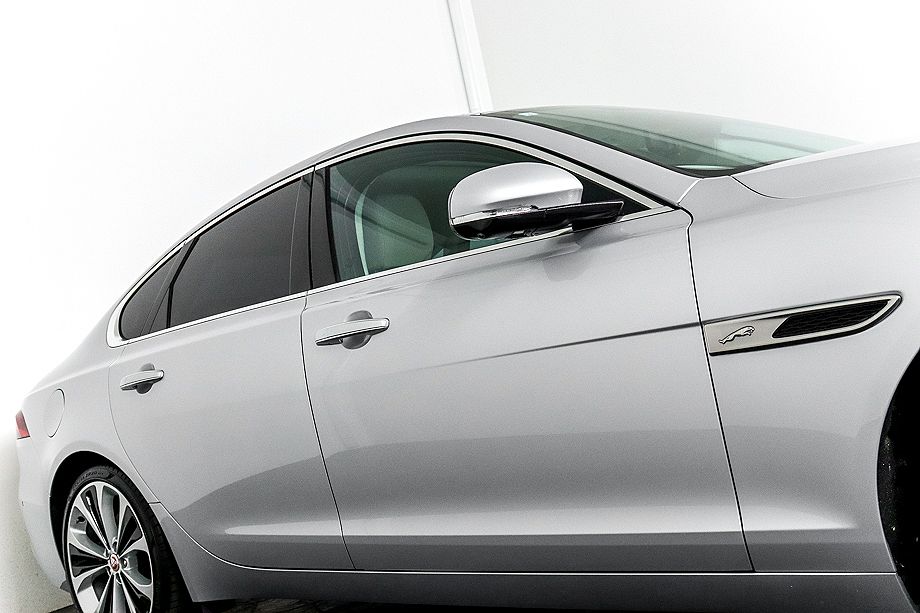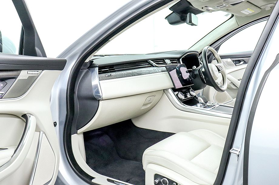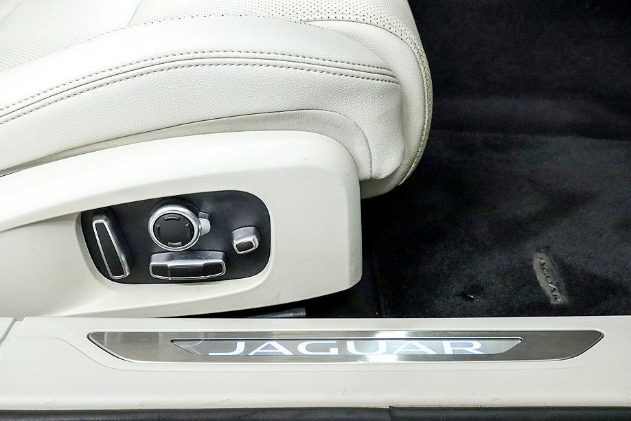 ジャガー XF S D200 正規ディーラー車 パノラミックガラスルーフ ホワイトレザー シートヒーター デジタルインナーミラー メリディアンサウンド 360°カメラ パワーテールゲート カープレイ アダプティブクルーズ ヘッドアップディスプレイ ハクバシルバーメタリック令和3年3月