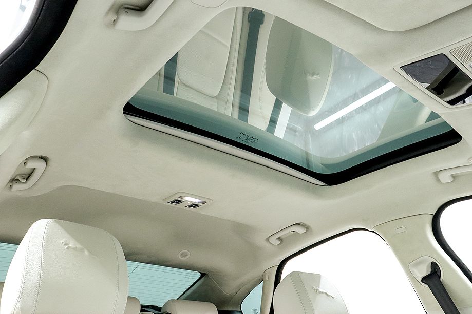 室内に足を踏み入れれば、ホワイトレザーのシートとパノラミックガラスルーフがもたらす開放感に心が解きほぐされるよう。