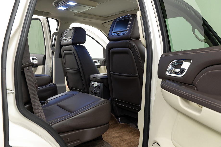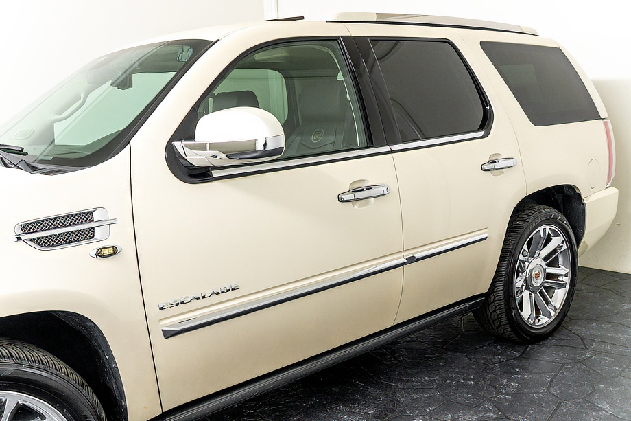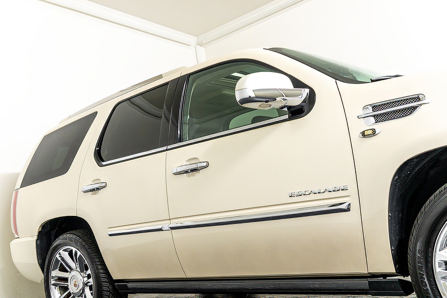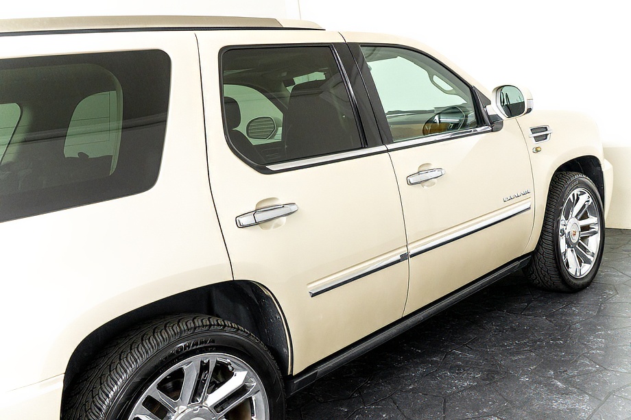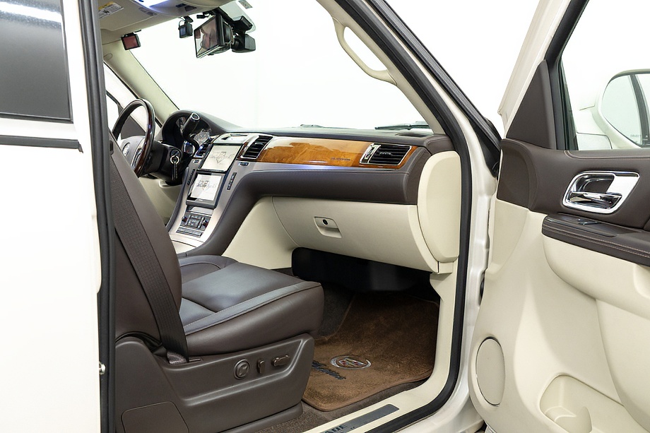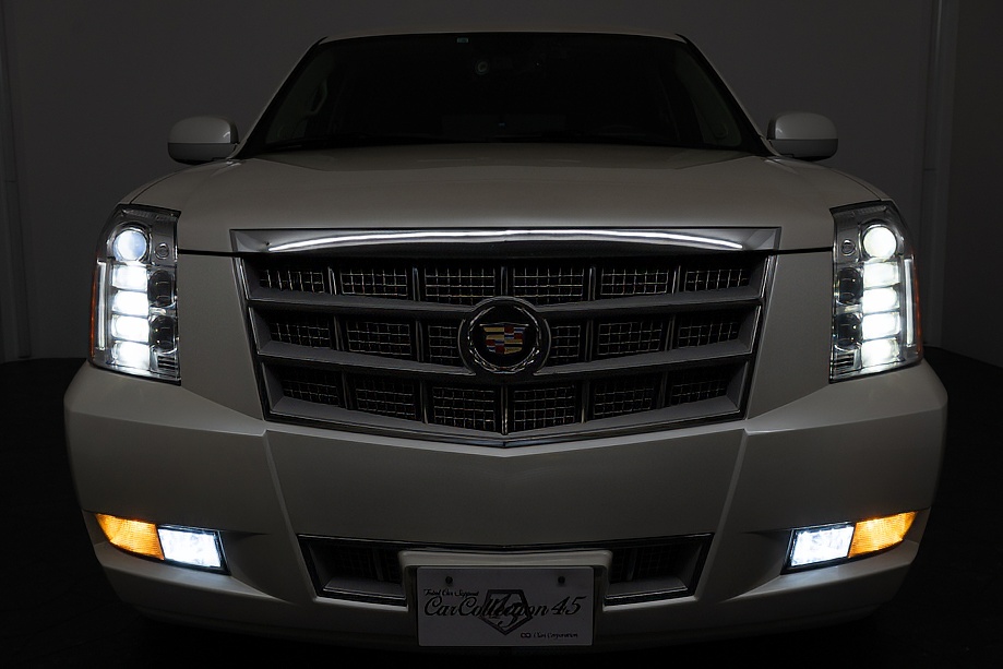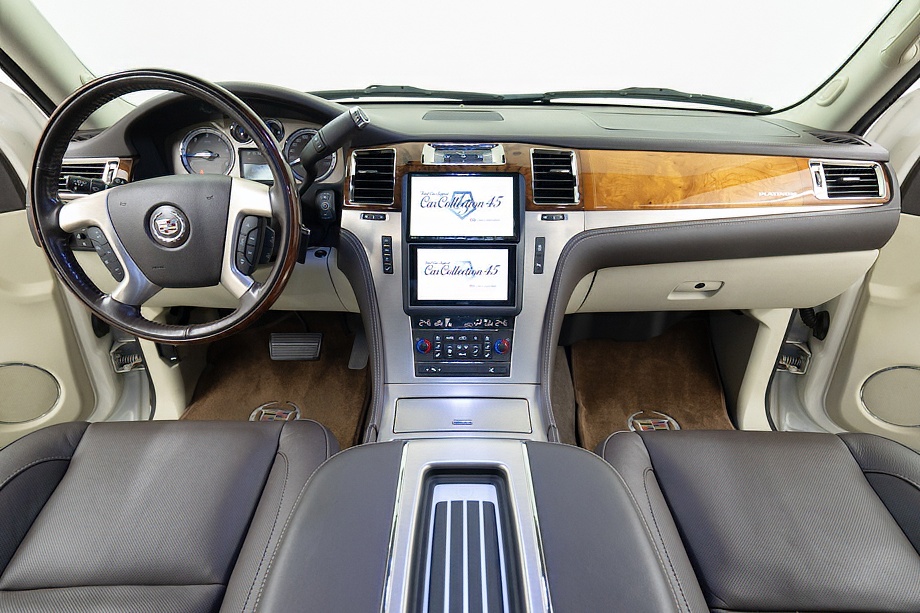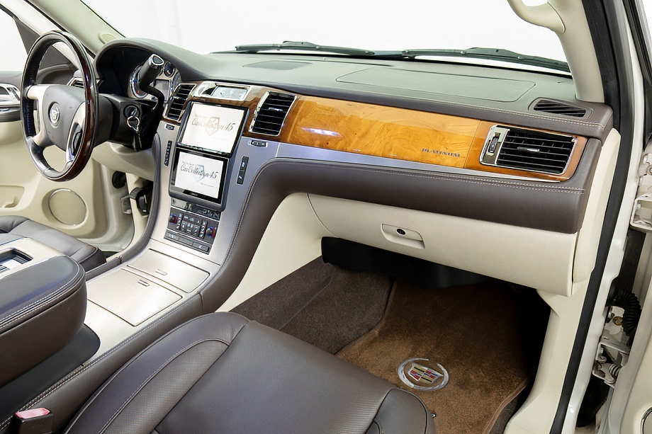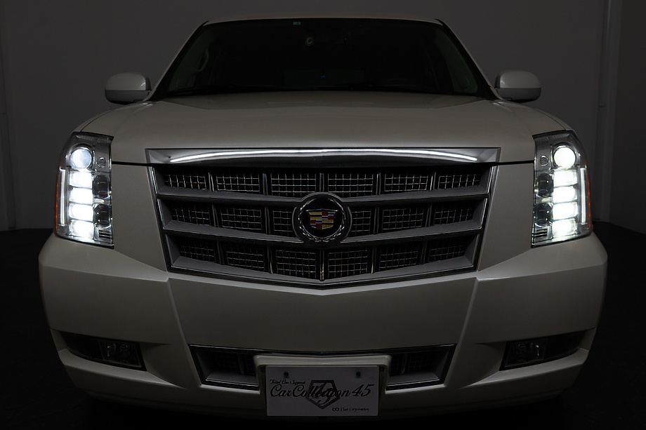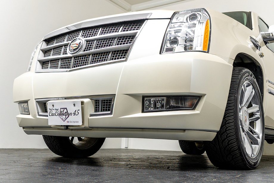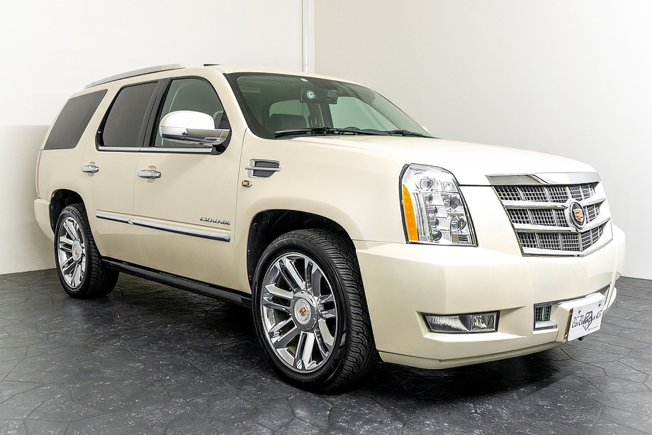 キャデラック エスカレード プラチナム 新車並行車 コルサ4本出しワンオフマフラー オートサイドステップ 純正22インチアルミホイール/ロワリング テハマアニリンレザーシート/ヒーター/クーラー サンルーフ アルパインナビ/フルセグTV パナソニックフリップダウンモニター バック/サイドカメラ ホワイトダイヤモンド平成24年8月