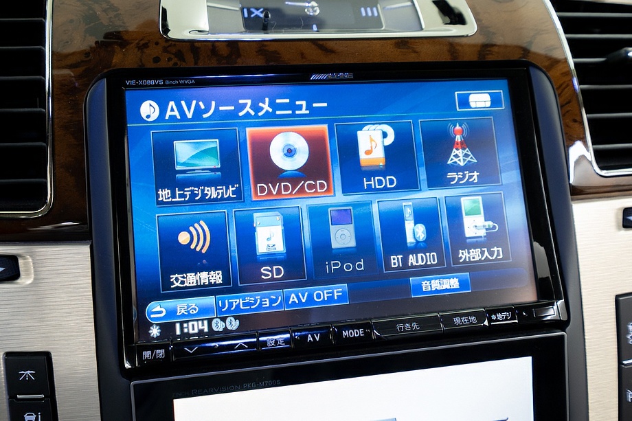 メディア関係では、アルパインのナビが取り付けられており、使い勝手が向上!またリアモニターにはパナソニックのフリップダウンモニターを装備し、長距離ドライブでも後席の方が飽きることなく快適にお過ごしいただけます!