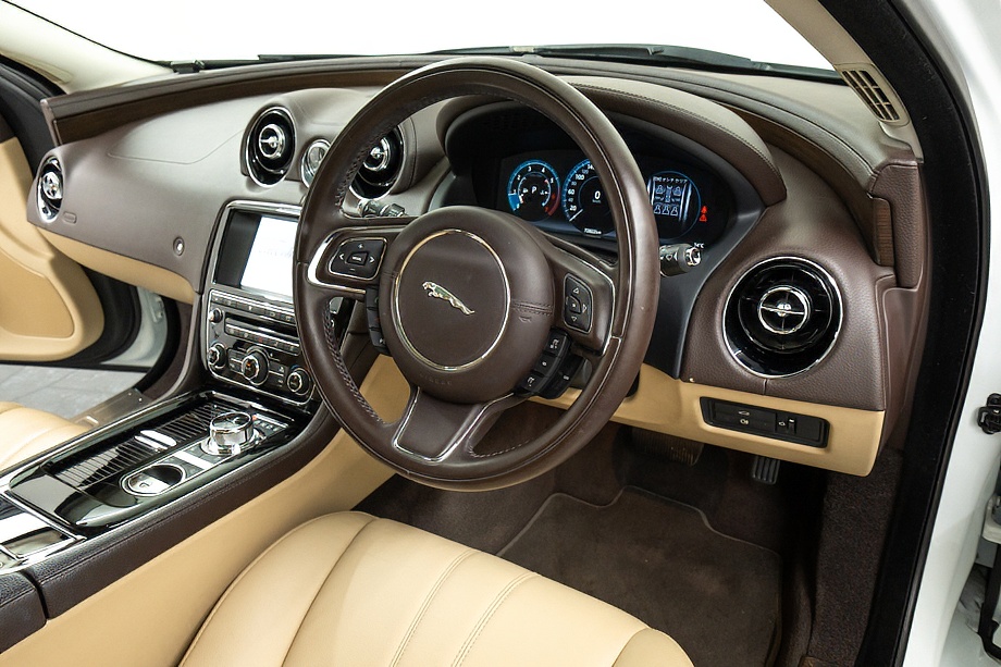 ジャガー XJ ラグジュアリー 正規ディーラー車 後期 1オーナー アダプティブLEDヘッドライト パノラマガラスサンルーフ ベージュレザーシート シートヒーター フル液晶メーター パワーテールゲート ソフトクローズドア パーキングエイド ポラリスホワイト平成28年9月
