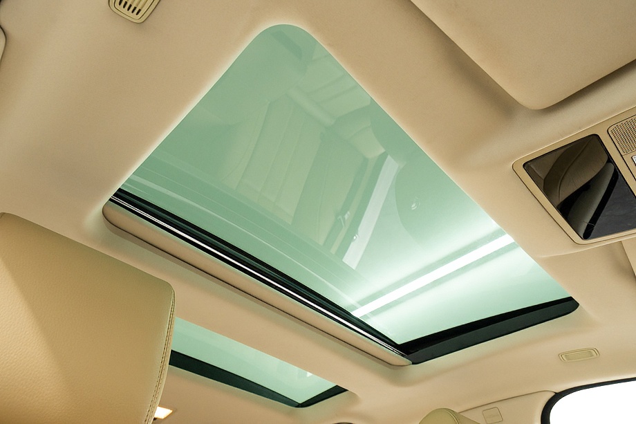 室内に足を踏み入れると、パノラマガラスサンルーフから降り注ぐ自然光と、ベージュレザーシートが織りなす開放的で穏やかな空間がお出迎え。