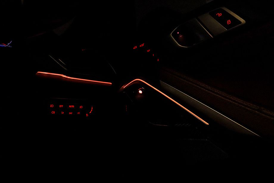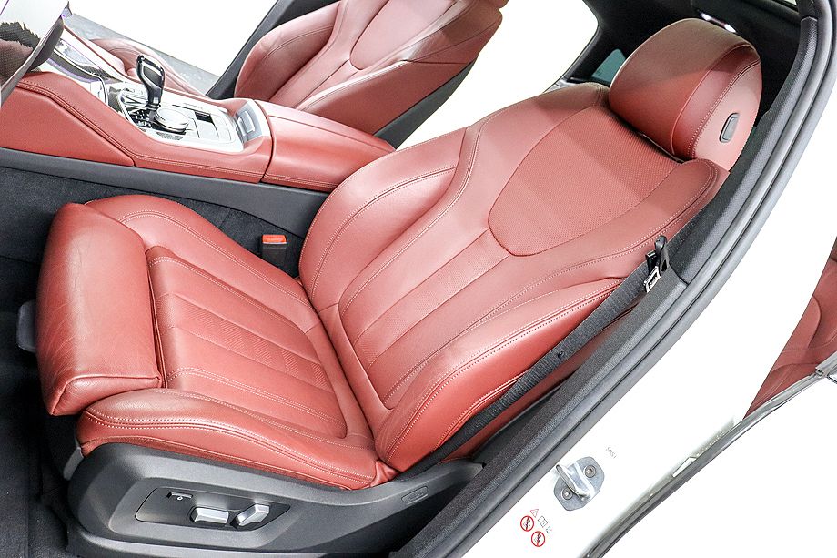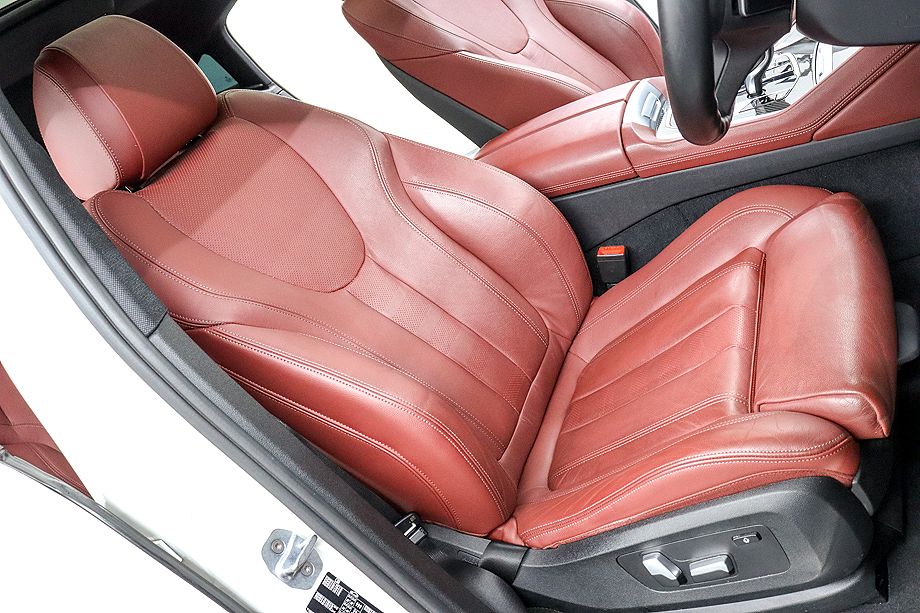 インテリアに足を踏み入れると、タコラレッドのヴァーネスカレザーが目を引く上質な空間が広がります。