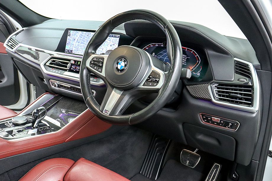 BMW X6 xDrive 35d Mスポーツ 正規ディーラー車 パノラマサンルーフ ソアマフラースピーカー 純正20インチホイール ブルーキャリパー タコラレッドレザーシート シートヒーター パワーテールゲート 純正ナビ TV 360°カメラ アルピンホワイト令和2年3月